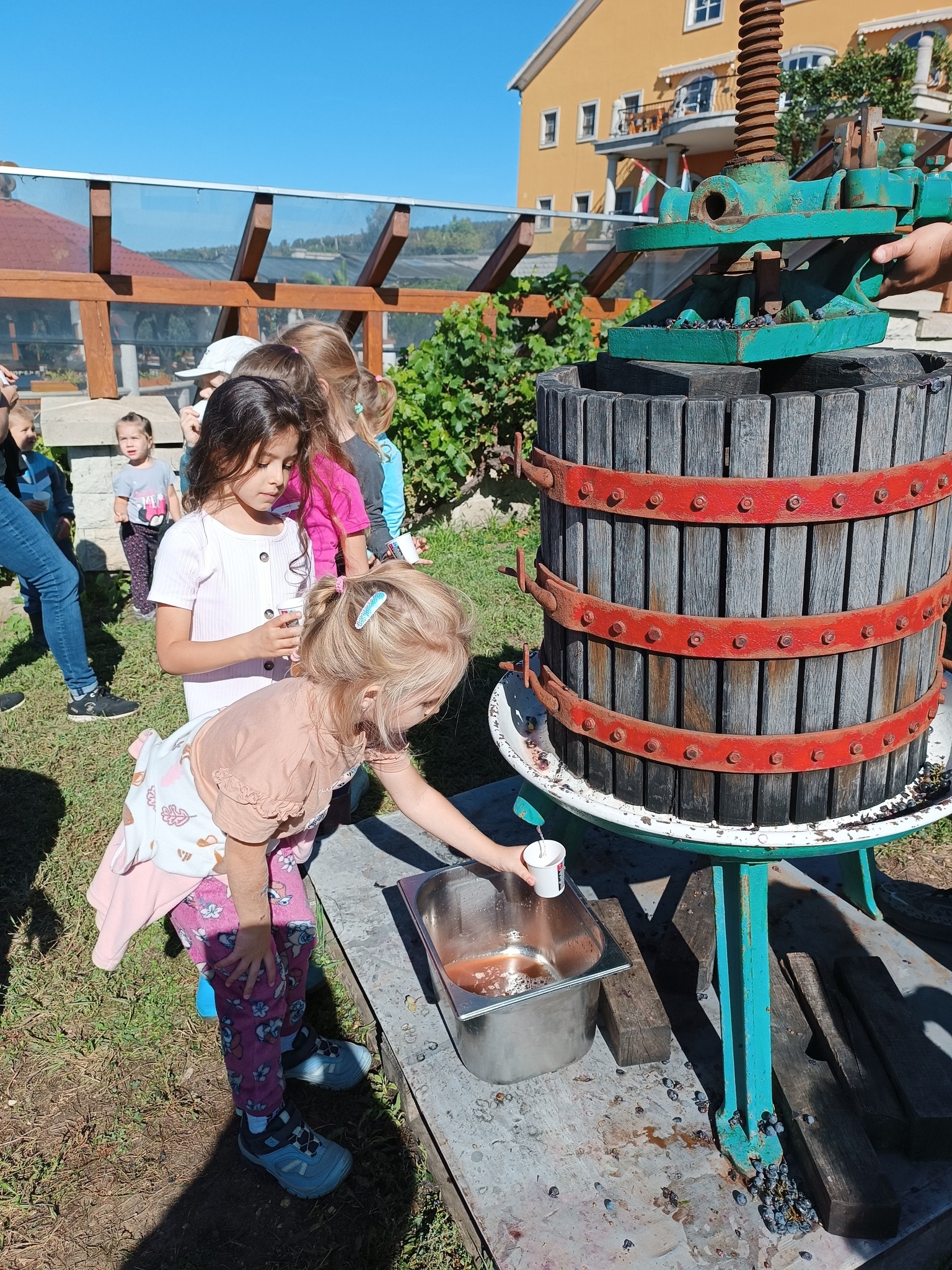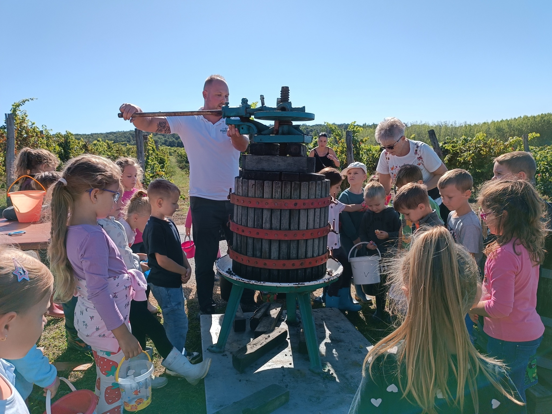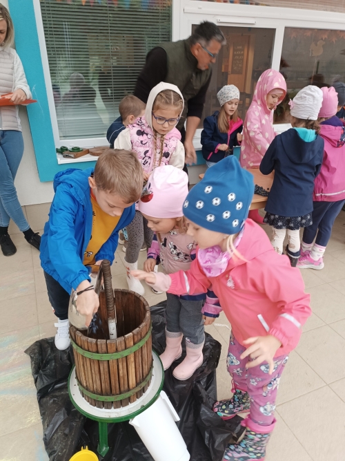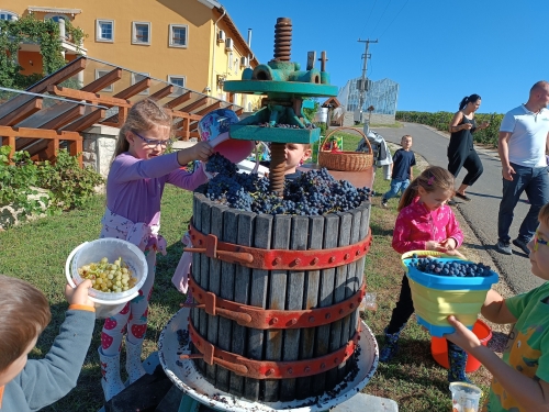 Az előző évek hagyományát folytatva idén szeptemberben is ellátogattak óvodás gyermekeink szüretelni. Ebben az évben a Demjénben található Egri Korona Borház nyújtott erre lehetőséget nagycsoportos gyermekeink számára. A gyerekek nagy lelkesedéssel vettek részt a szőlőszedésben, mustkészítésben és sok új élménnyel gazdagodtak. A kisebb csoportok az óvodán belül ismerkedtek meg a szüretelés folyamatával - szőlőt szemeztek és kóstoltak, mustot készítettek szülői segítséggel, és játékos formában tanultak a szüretről.