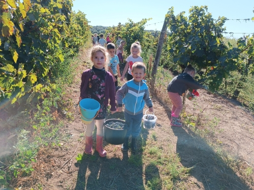 Az előző évek hagyományát folytatva idén szeptemberben is ellátogattak óvodás gyermekeink szüretelni. Ebben az évben a Demjénben található Egri Korona Borház nyújtott erre lehetőséget nagycsoportos gyermekeink számára. A gyerekek nagy lelkesedéssel vettek részt a szőlőszedésben, mustkészítésben és sok új élménnyel gazdagodtak. A kisebb csoportok az óvodán belül ismerkedtek meg a szüretelés folyamatával - szőlőt szemeztek és kóstoltak, mustot készítettek szülői segítséggel, és játékos formában tanultak a szüretről.